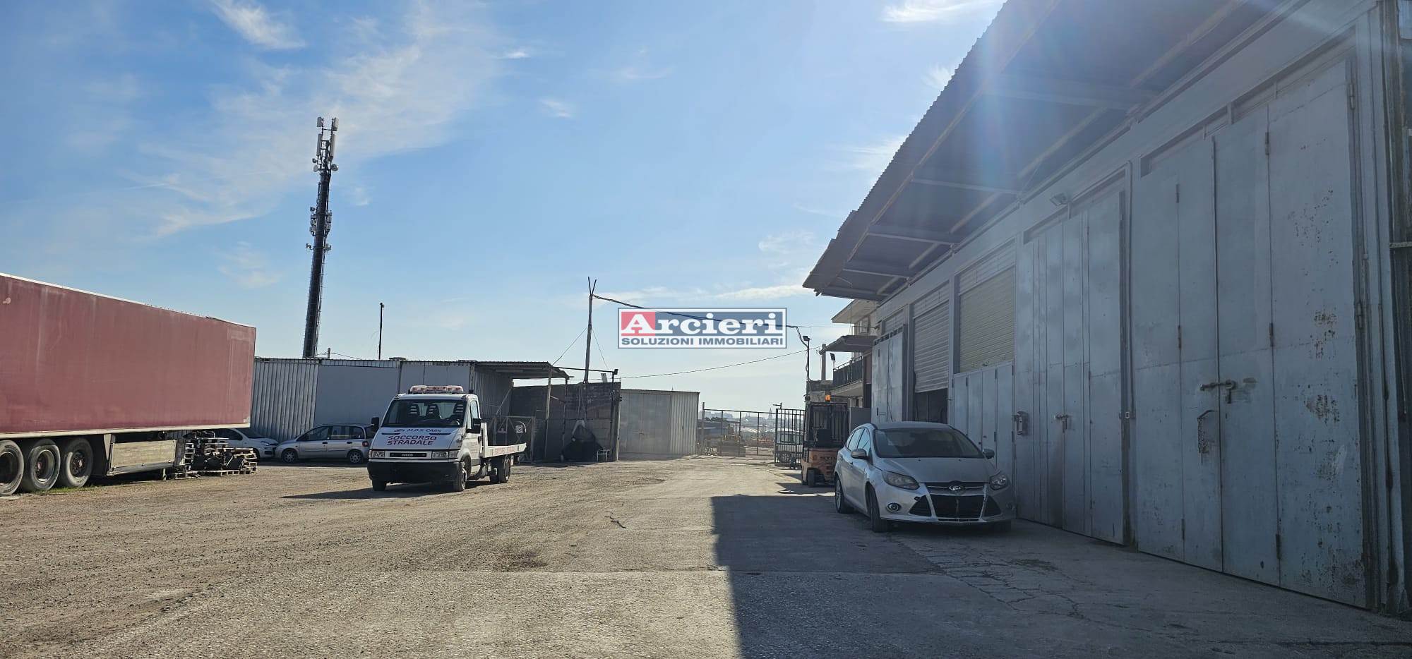 L’intera proprietà si estende su un suolo di circa 2,5 ettari interamente recintato e organizzato per il ricovero, la sosta e il noleggio di veicoli, autocarri e motocicli.