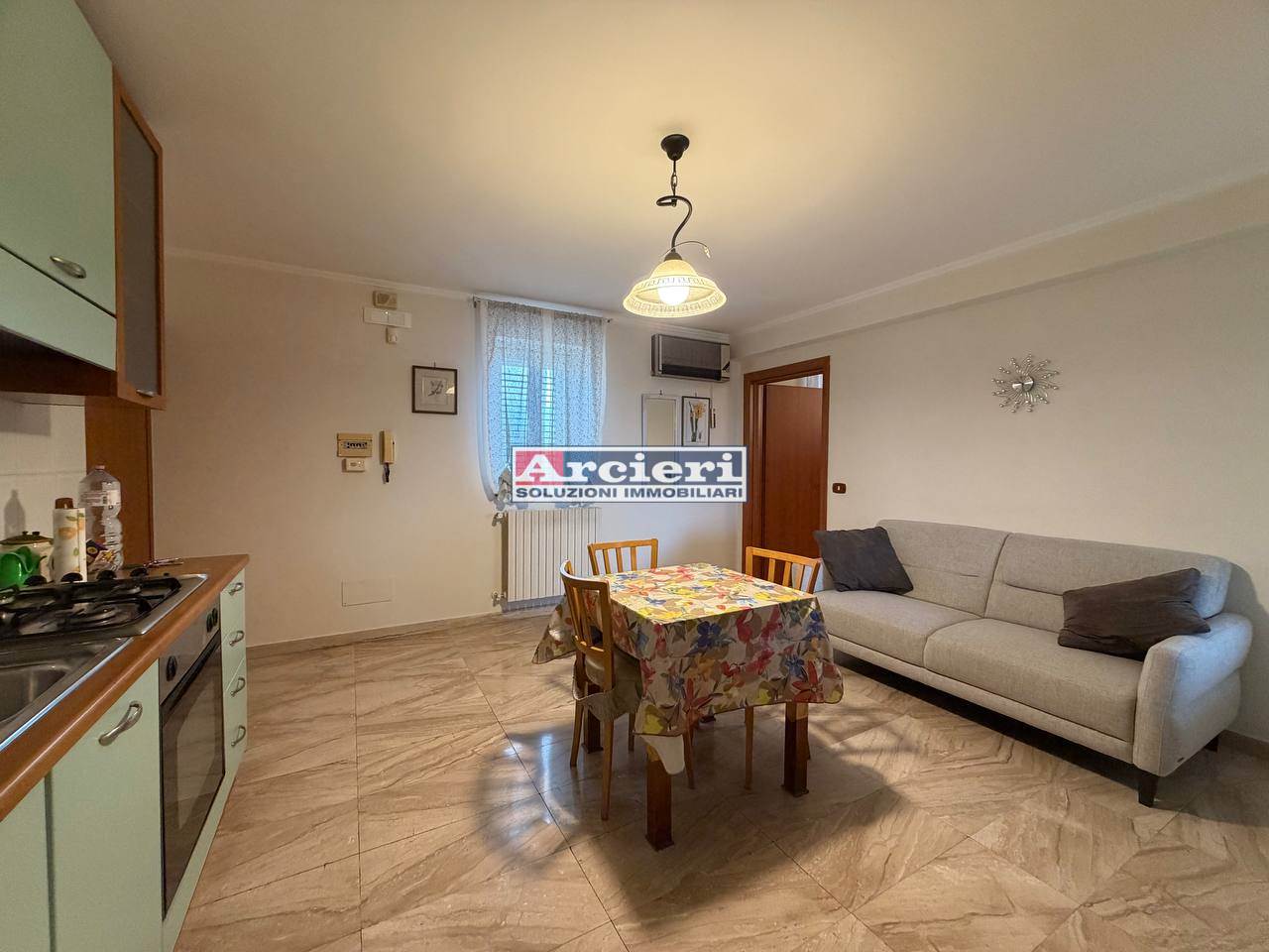 L’ingresso conduce a una zona giorno con cucina a vista, funzionale e luminosa. La camera principale è comoda e ben organizzata, affiancata da un bagno moderno e da una seconda stanza versatile, perfetta come cameretta, studio o ripostiglio.